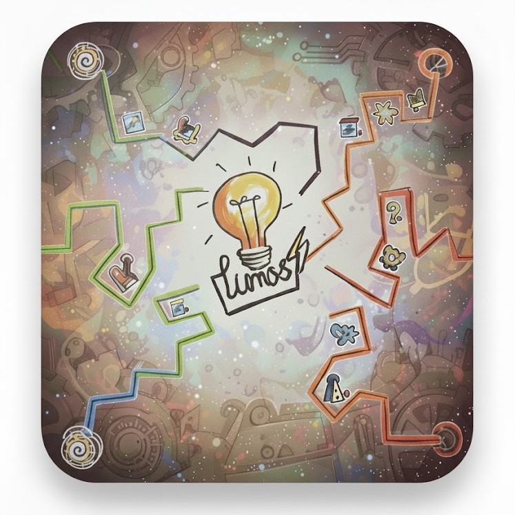 Lumos is a fast-paced hybrid board-and-card game for 2–6 players, where you build and protect electrical pathways to power your bulb first. Use movement cards to extend your circuit, attack opponents’ paths with sabotage cards, and wield legendary cards to shift the balance in your favor.